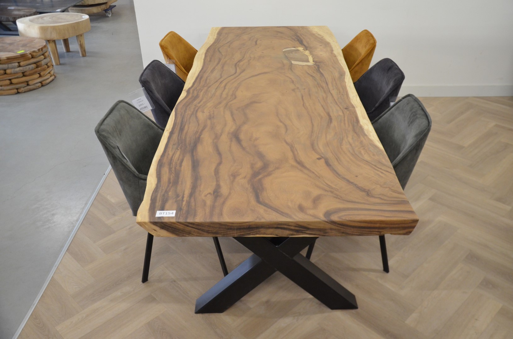 Stel jouw Suar Boomstam tafel of tafelblad samen in onze showroom in Gieten (tussen Groningen, Emmen en Assen). Wij zijn ook bijna het hele jaar op zondag geopend.