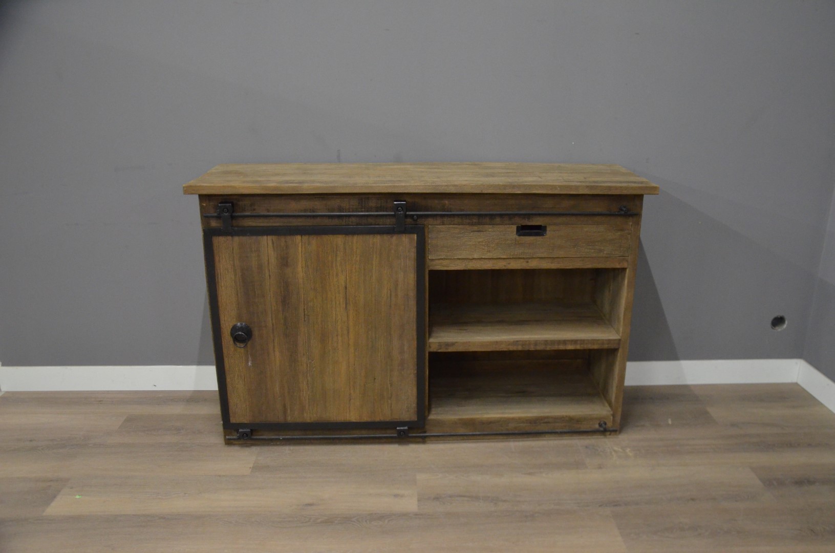 Het meubel is voorzien van een handige lade, open legplanken en een ruim compartiment achter de schuifdeur. Ideaal als tv-meubel, dressoir in de woonkamer of als stijlvol opbergmeubel in de hal.