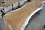 Deze Suar boomstamtafel heeft een blad met een lengte van 400 cm! Het blad bestaat uit één deel en heeft een dikte van ongeveer 8 cm